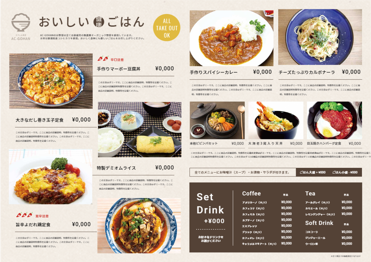 自慢のオムライスとハンバーグ、季節のサラダと副食のワンプレート